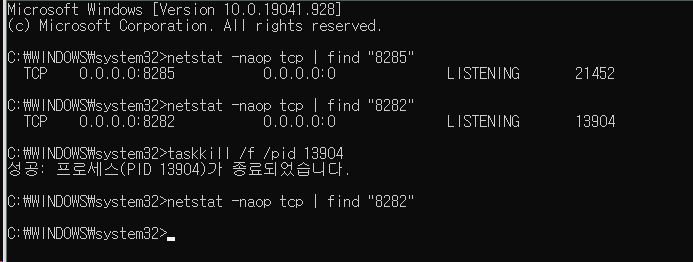 taskkill /f /pid [해당pid]