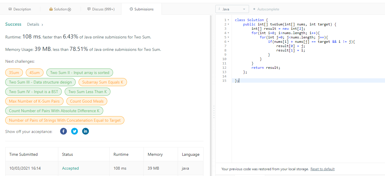 two sum은 easy 난이도인데..
