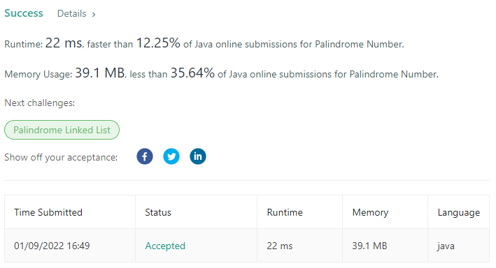 오늘은 LeetCode에서 9번 Plindrome Number 라는 문제를 풀었어요.